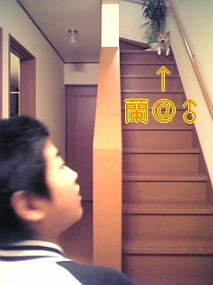 画像は弟きっき君と、階段の上でまったりしてる、犬の蘭@♂。