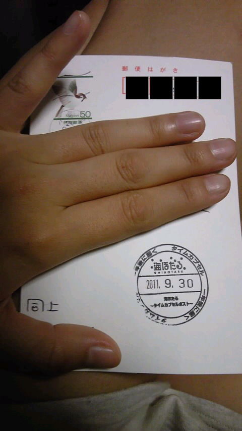 一年前に海ほたるへ行ったときに、自分の近況を書いて手紙に出したのをすっかり忘れていたのですが、届きましたよ